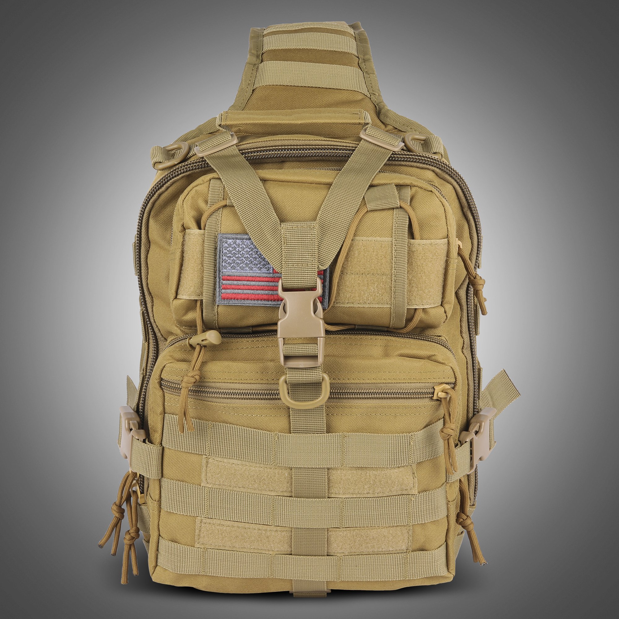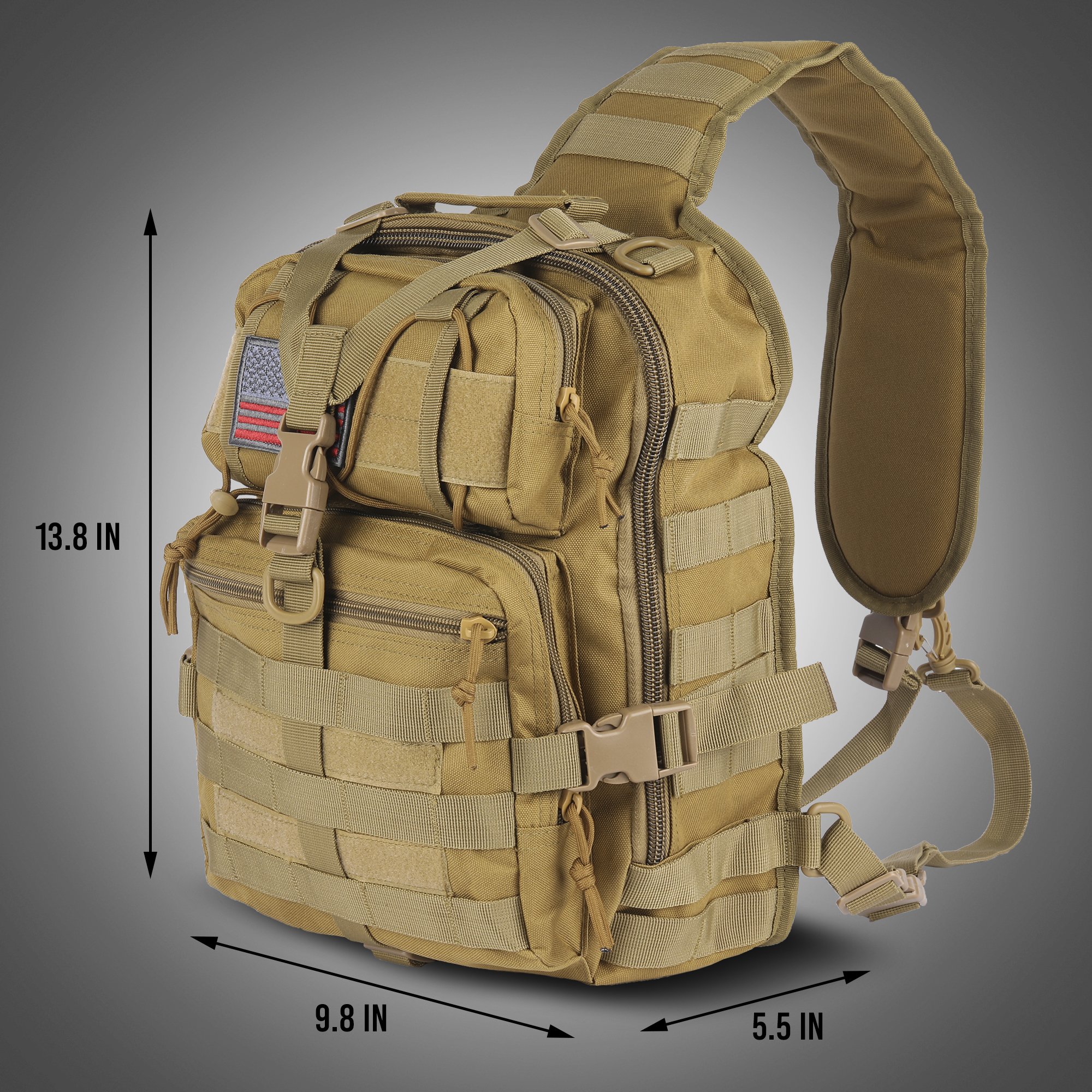 • MULTIPURPOSE: Perfect for an outdoor EDC sling pack, tactical messenger chest bag, EMT hand bag, go bag, bug out bag and is a great tactical assault pack. This over the shoulder backpack is very useful for short trips and travel and designed to meet your on-the-go needs.