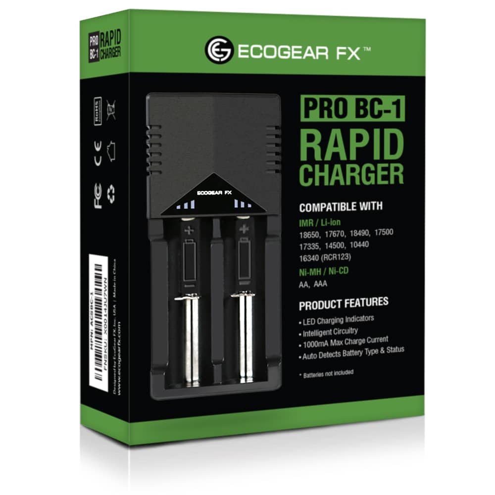 With intelligent circuitry and dual battery channels, this is our best 18650 battery charger and it is compatible with almost all rechargeable batteries. The charger automatically identifies Li-ion, Ni-MH and Ni-CD rechargeable batteries and then applies the appropriate charging mode for a given battery.  Recharging a battery is as simple as inserting you favorite 18650 batteries, detect and charge. The lithium ion 18650 battery charger is simply the best with two battery charging slots. Each slot is capable of charging batteries independently giving you added convenience. Rechargeable batteries of differing chemistries and voltages may be charged simultaneously using 1 or 2 of the charging slots. Features and Benefits